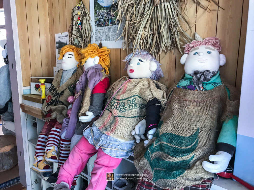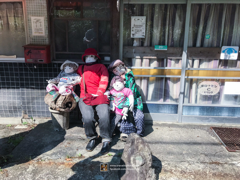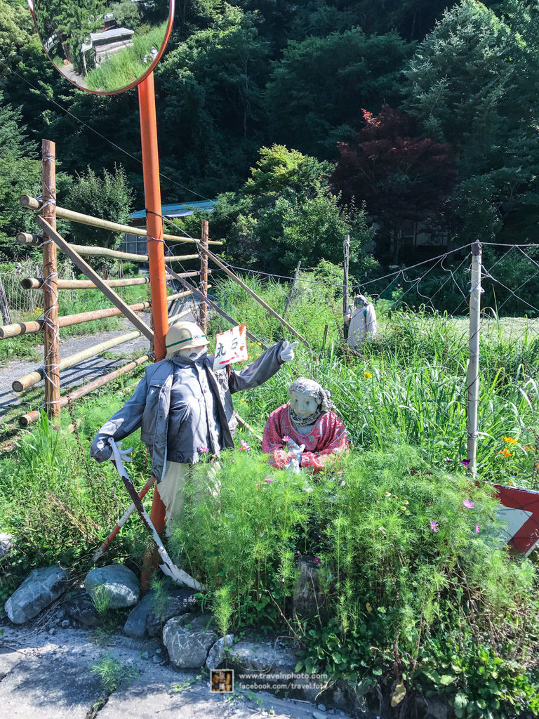 稻草人的作者是綾野月見,由於要照顧患病的媽媽,所以從大阪回鄉生活。耕田時少不免要造稻草人,愈做愈多,因此而成名。在過去11年裡,居然造了350個之多。製作一個稻草人,大概需要兩天時間,首先由頭部開始,之後身軀,製作時,會用報紙填塞成想要的形狀,並用膠袋包圍著,藉此防水。衣服鞋襪方面,由於都是選用真實的衣服,所以效果特別有生命力。