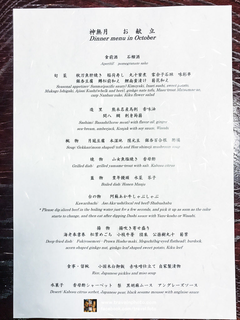 若然是會在黑川溫泉住宿,那麼建議大家提早到達,最好check in 前完成溫泉街,並提早30至60 分鐘check in 。那麼就可以在晚飯前享用旅館內的私人風呂(要預約),及用手形去其他起碼一家溫泉。因為這邊的會席料理用餐時間非常長,6時半開始基本上9 時過後才完成,即是無法再去其他旅館泡湯了。不要緊,繼續享用其自己館內其他溫泉設施。