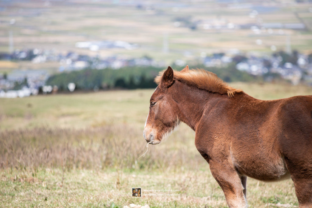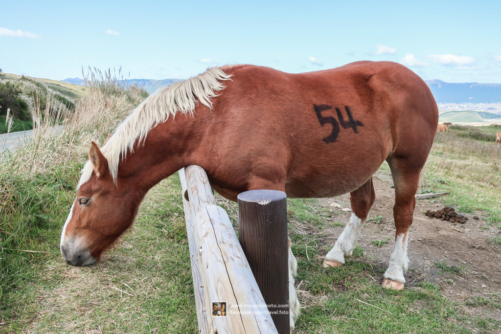 在通往阿蘇中岳火山口的路上,周邊都有不少牧場,隨處都會看到馬和牛在曬太陽,自駕的話只要找到安全的泊車點,就可以跟牠們互動一下,及拍拍照。加上阿蘇谷及外輪山做背景,比本身要去的景點可能更令人回味。