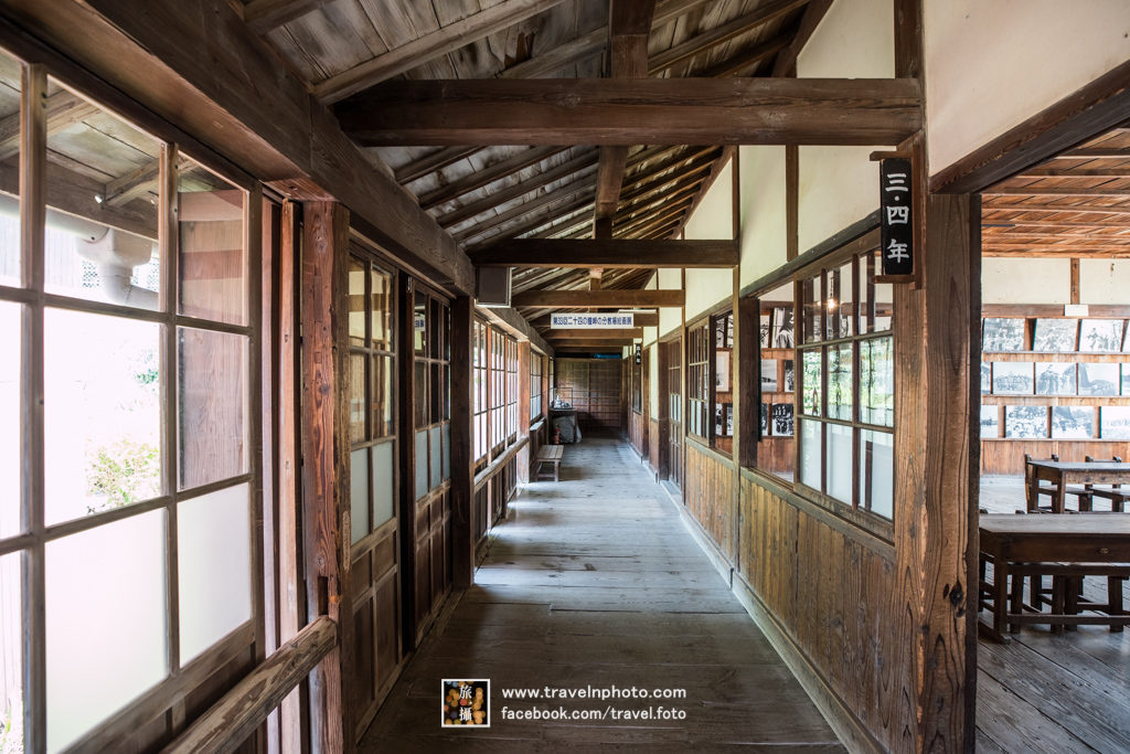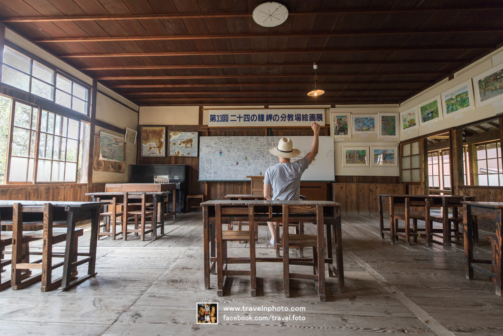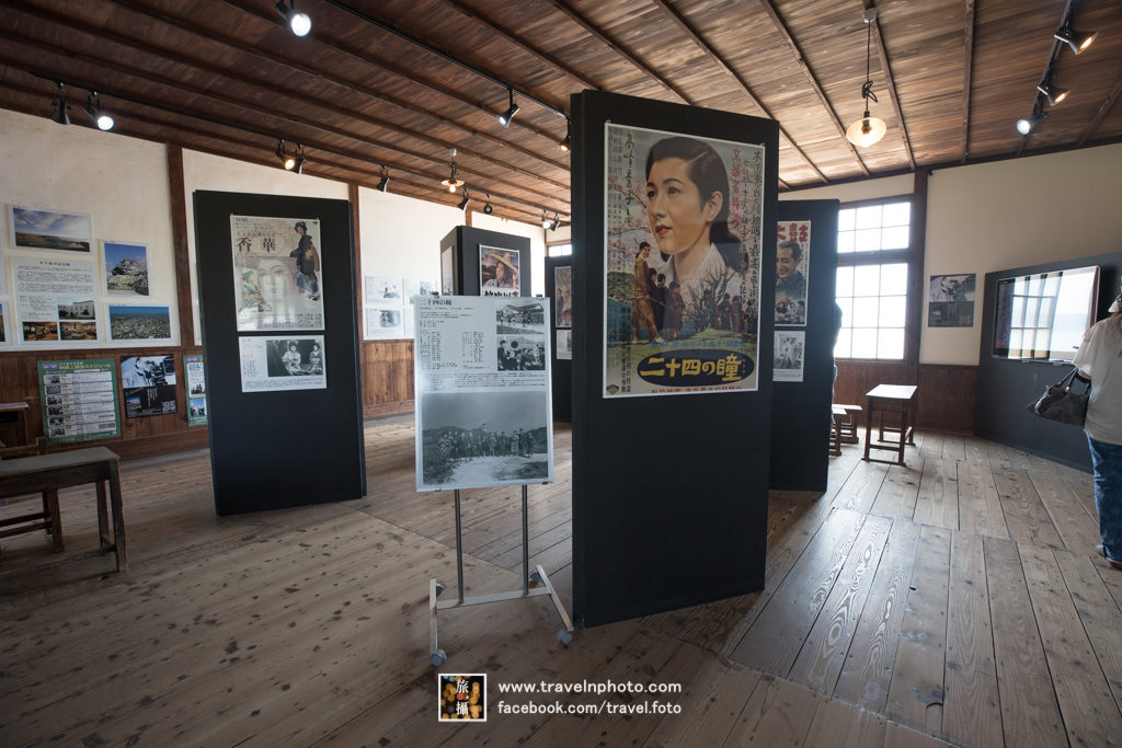 早上離開旅館後,還有三個多小時才到預計的船程,但昨天已經把主要景點走勻,所以再次走到東面盡頭,看看二十四瞳電影村。它保留了日本國民電影二十四曈使用的外景佈景,完整重現了昭和時代島上學校的風景。第一站是以江戶時代的教室為主題,教室一枱一木保存得很好,好似時光倒流回到過去一樣,我特別喜歡木造的建築,拍攝了不少照片留念。