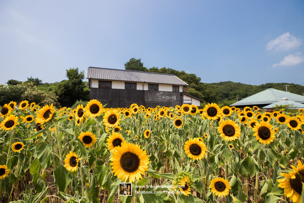其後再駕前一點,走到電影村內參觀。其中一個驚喜是在入口竟然看到一片太陽花田,每朵還要長得十分荗盛,這是我人生中第一次看到花期全盛時期,雖然天氣十分炎熱,但難得看到這情景,所以唯有快速地四處拍照。當然你也也可順道欣賞海邊景色及走進不同場景小屋內參觀,而這趟地方我卻認為很值得花時間逗留,當然你也可以順道欣賞海邊景色及走進不同場景小屋內參觀,逛逛小店歎歎冷氣,香川就是要這種漫遊才有意思!以下不寫太多,用圖片說故事吧。