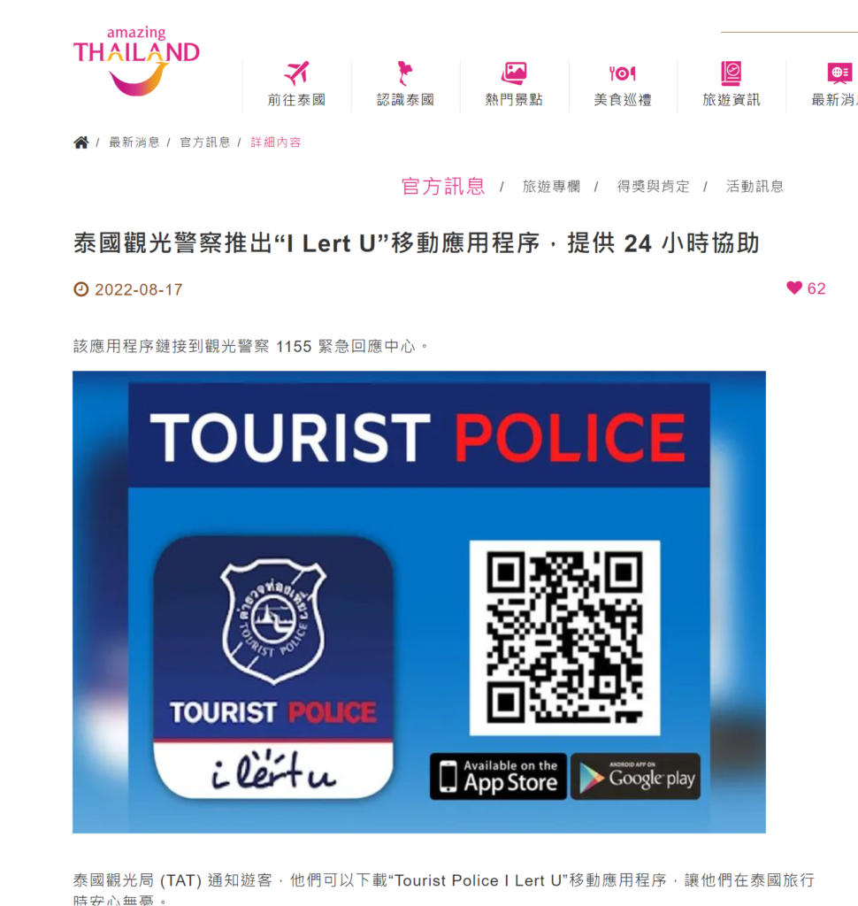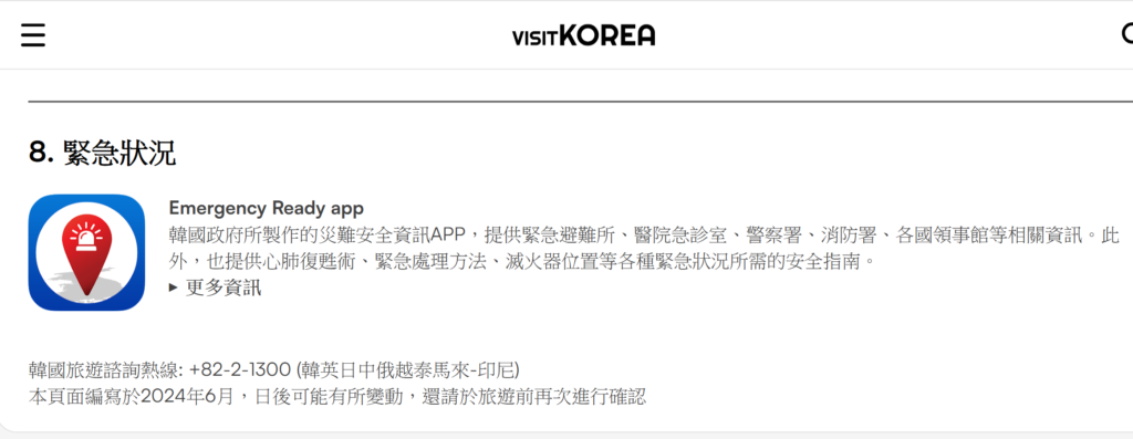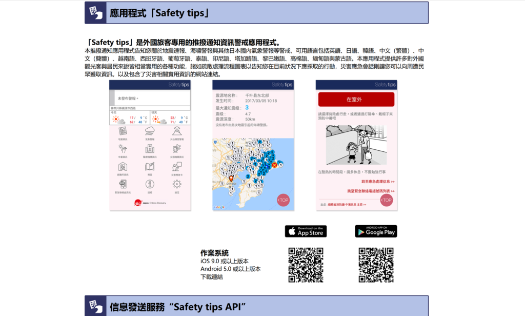 5.9K Heading Title 香港人若然在外地旅遊的時候遇到天災或者緊急事故,可以預先準備定, 當地提供緊急資訊嘅網站或者應用程式。以下收集了香港人最常外遊的亞洲地點,當地提供緊急資訊的網站或者應用程式 中國 地震預警:基於中國地震預警網提供預警服務。地震發生時提早幾秒到數十秒預警,可在災後上傳避險回饋、災情採集險情,以便精準救援。(App Store下載)微信小程式:自然災害預警訊息Screenshot 日本 日本: https://www.jnto.go.jp/safety-tips/chc/app.html 泰國 泰國: https://www.tattpe.org.tw/News/Info.html?id=658 台灣: 台灣:中央氣象局W – 生活氣象台灣中央氣象局發行的《生活氣象》提供地震、颱風即時防災警報,針對日常生活的實用資訊也一應俱全(App Store下載/Google Play 下載) 韓國 韓國:Emergency Ready app 韓國政府所製作的災難安全資訊APP,提供緊急避難所、醫院急診室、警察署、消防署、各國領事館等相關資訊。此外,也提供心肺復甦術、緊急處理方法、滅火器位置等各種緊急狀況所需的安全指南。 APP下載 │ Android, iPhone (英日中) 1 FacebookTwitterPinterestEmail previous post 【甘坑古鎮遊攻略】日夜大不同!一片看完夢幻打卡位!著名文青書店,室內騎馬場!體驗客家文化,走進350年歷史古鎮! next post 【富士山露營2日1夜懶人包】直望富士山!日本最强露營聖地!附近仲有個必去嘅神社?富士山周邊美食景點大推薦! 你可能會喜歡 【甘坑古鎮遊攻略】日夜大不同!一片看完夢幻打卡位!著名文青書店,室內騎馬場!體驗客家文化,走進350年歷史古鎮! 富士山秘位 – 攝影地圖 【 香港去哪裡拍攝 】深水埗 棚仔 攝影師視角拍攝分享vlog 認識一帶一路相關連結 德島縣最新旅遊景點攻略 何時可以再去旅行? 預測及相關網站 山陰島根縣景點行程推介2020 (一) – (足立美術館 / 八重垣神社 / 出雲勾玉之里傳承館... 福島縣景點旅遊分享 (二) (裏磐梯、只見川、鶴ヶ城、大内宿) 福島縣景點旅遊分享 (一) (土湯溫泉、磐梯湖、福島水族館) 旅攝不丹之「不丹好玩嗎?」