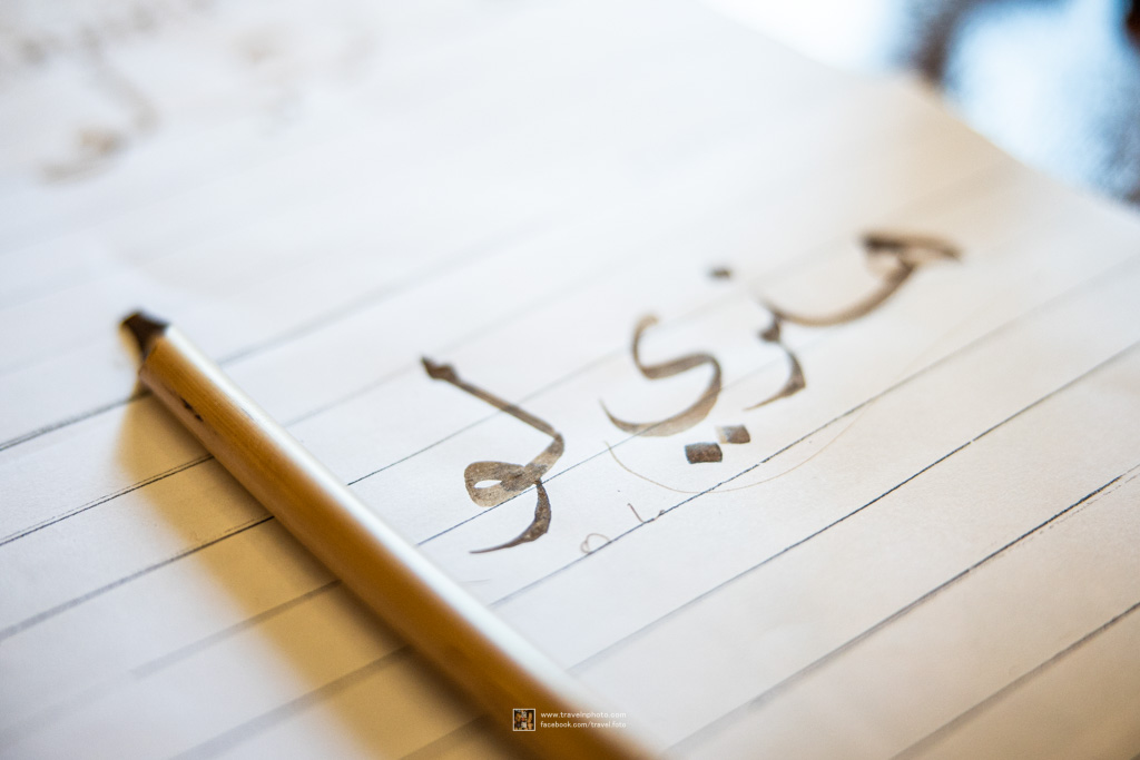 當中最有趣的當然是老師安排我們如何用炭加蜜糖製成墨水,然後用處理過的竹支去親手寫阿拉伯字。 最後他還幫我寫了「旅.攝」和我的名字的阿拉伯文 ,很有紀念價值呢。