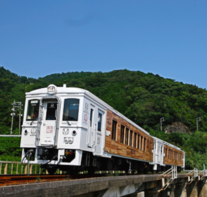 顧名思義,這段觀光列車既可以看到宮崎海邊的奇幻風光,也會進入綠意盎然的山林裏面。白色配上木紋的車身,也是非常大膽的車身設計