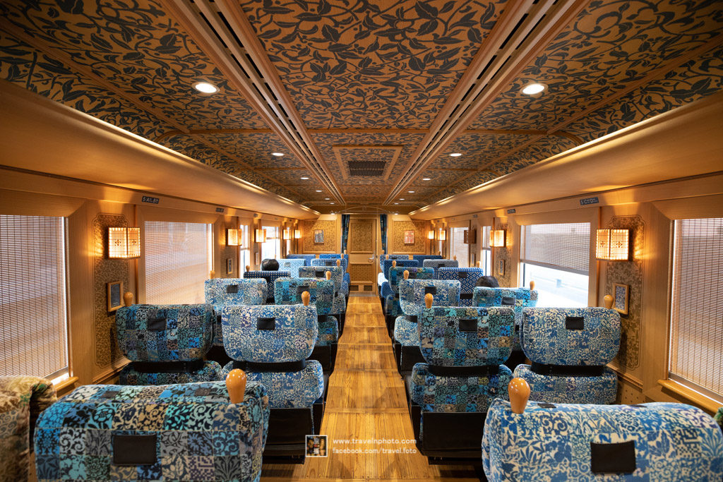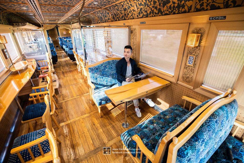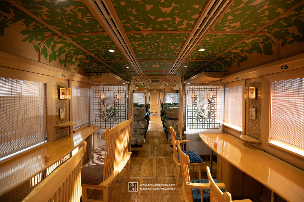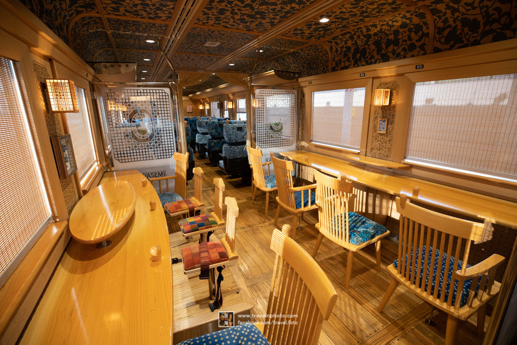 「翡翠山翡翠」,入面的裝修實在太惹人喜愛,精緻之餘不落俗套, 有不少座位直接望向窗戶,基本上是180度觀賞外面的風景。列車分別有2 節車箱: